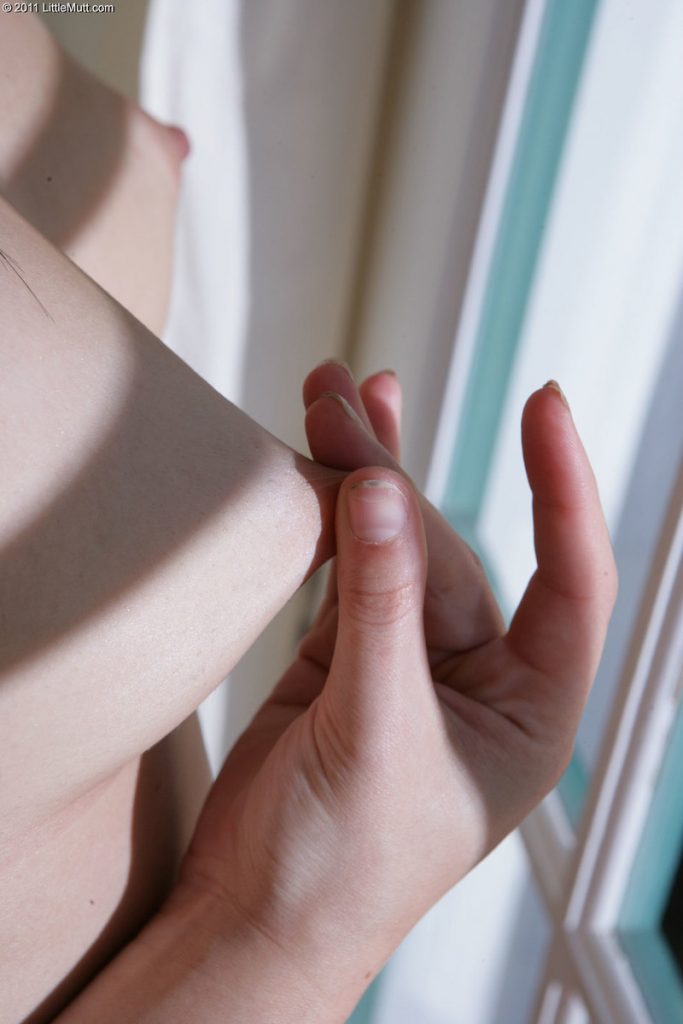 Czarnowłosa nastolatka nastolatka zdejmuje staniczek i ściska różowe sutki. Nieśmiała laseczka ma małe piersi i wilgotne wnętrze słodkiej jak miód cipki. Gorąca brunetka lubi się delikatne masturbować w domowym zaciszu. Młoda i napalona panienka.