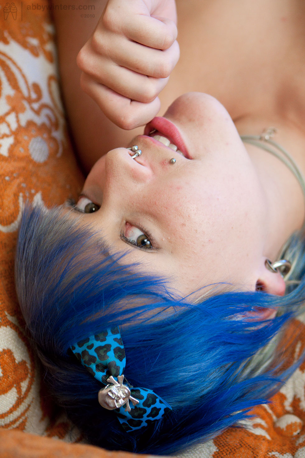 Młoda dziewczyna wyskakuje z ciuszków i delikatnie się masturbuje. Emo laska ma wiele kolczyków różnych częściach swojego ciałka. Zwariowana laseczka wypina malutką dupeczkę w kolorowych majteczkach. Nastolatka lubi robić loda.