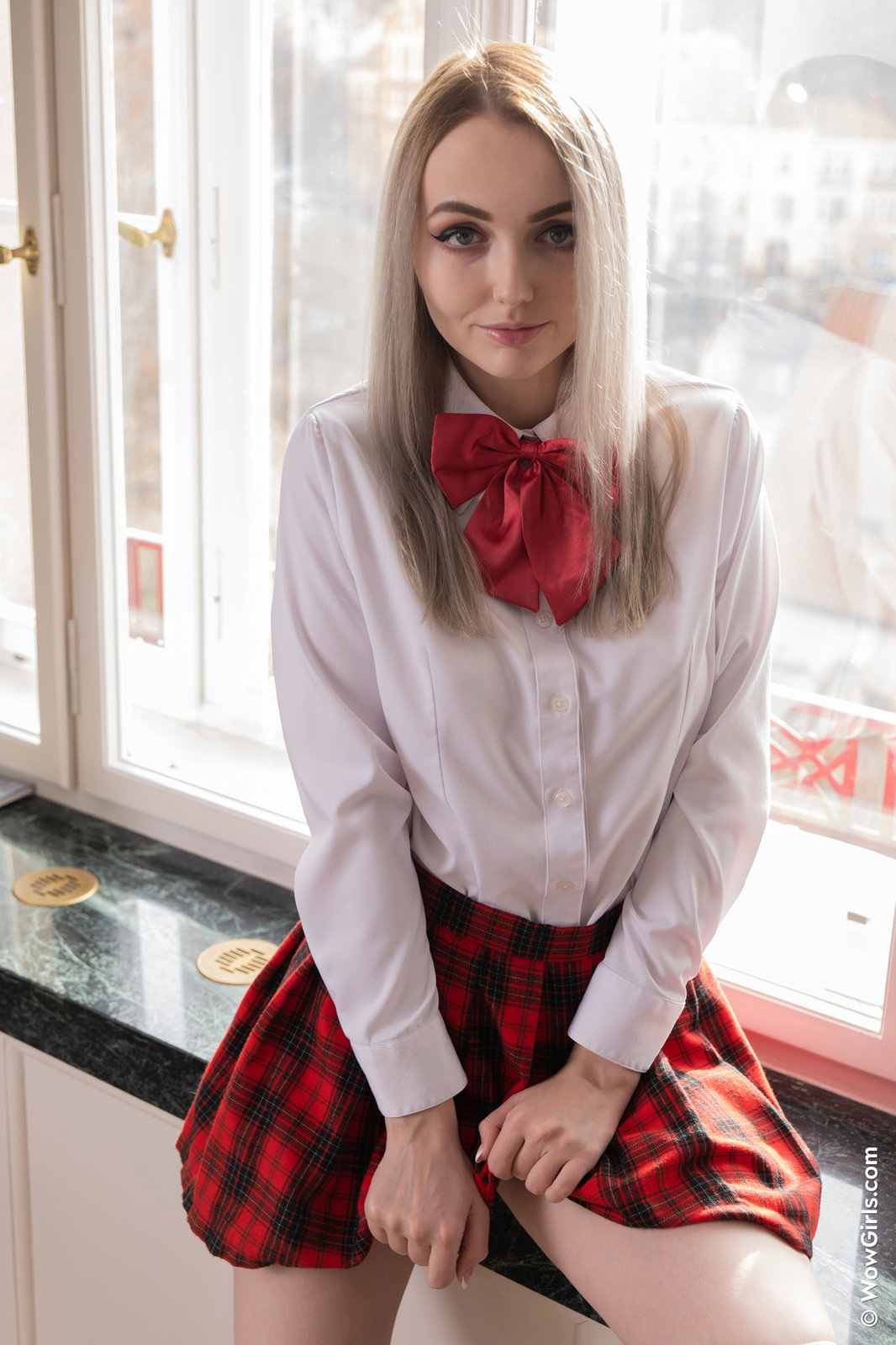 Kusząca porno uczennica siada na parapecie i zdejmuje białe majteczki. Erotyczna i naturalnie cycata dziewczyna pieści się przed obiektywem aparatu. Szczupła laseczka ma duże oczka i zniewalające spojrzenie. Młoda dziewczyna ma wiele do zaoferowania.