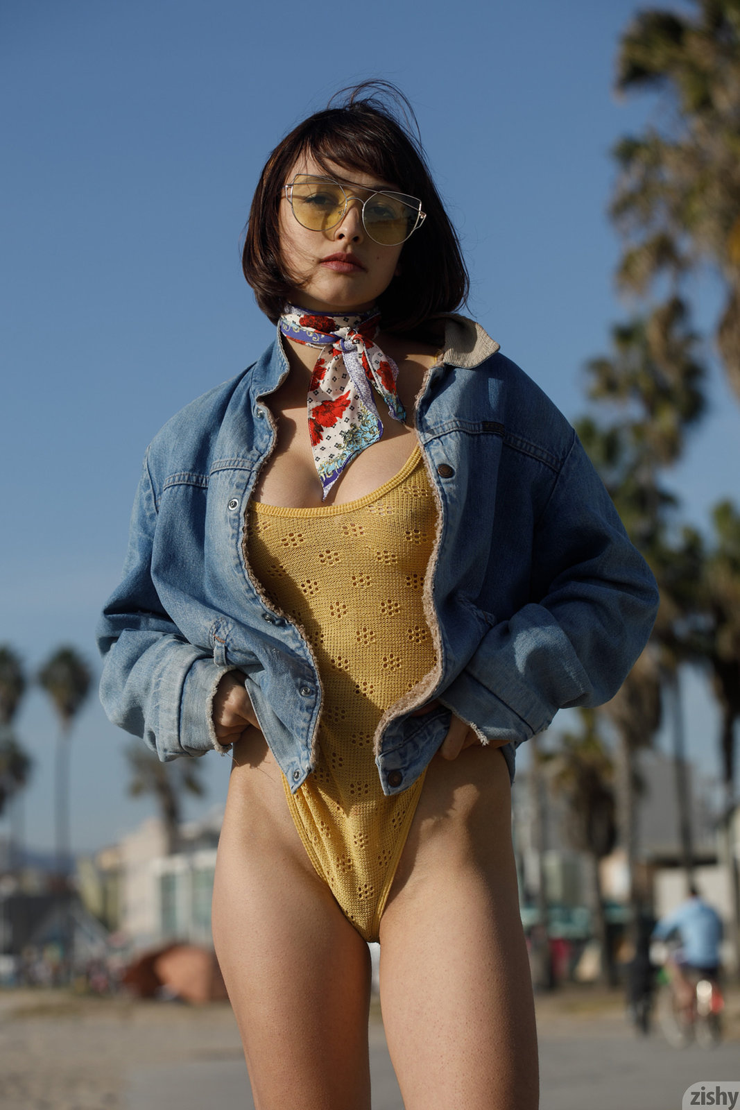 Fajna i młoda porno okularnica robi seksowny pokaz pod palmami. Kusząca dziewczyna kładzie się na rozgrzanym piasku i klepie się po znakomitych pośladkach. Młoda amatorka ma ochotę na zmysłowy seks o zachodzie słołca nad oceanem.Ã?Â