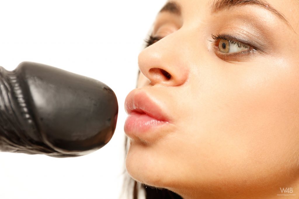 Laska z pięknymi oczkami liże dildo