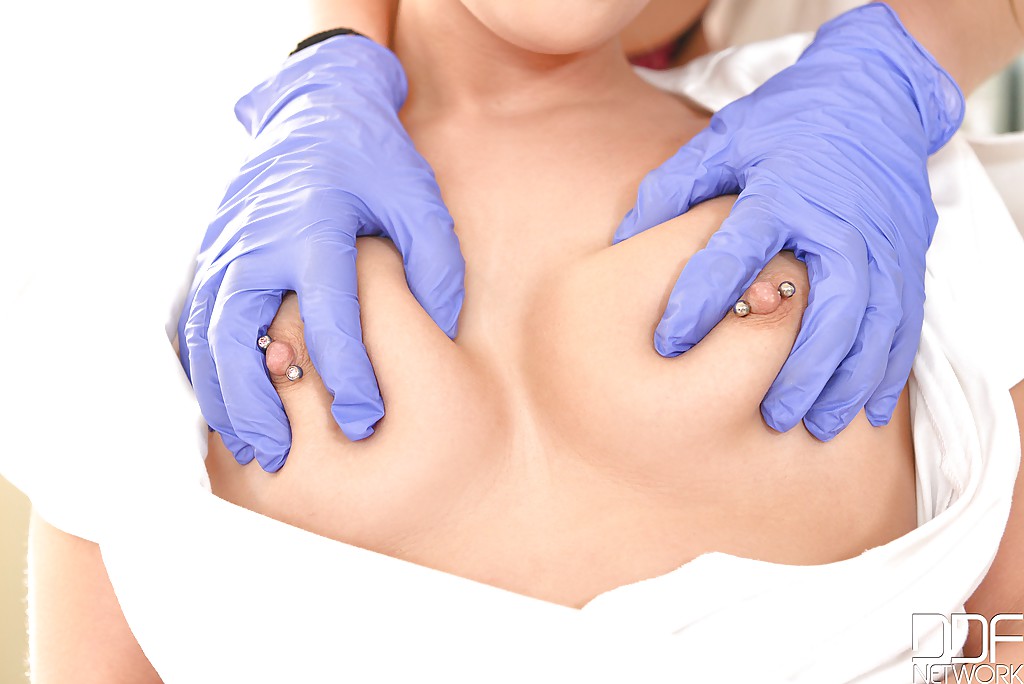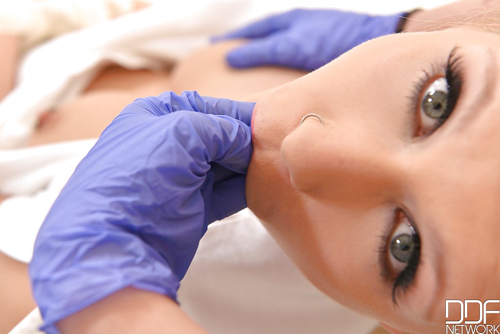 Dwie seksowne lesbijkiÃ? Lena Nitro i Kendra Star, znane gwiazdy porno, ubrane w iałe kitelki, połczoszki i wysokie szpileczki. Brunetka pod spodem ma seksowną czerwoną bieliznę, powoli zdejmują z siebie ciuszki odsłaniając piękne ciałka, jędrne cycuszki i wydepilowane cipki w które wkładają paluszki