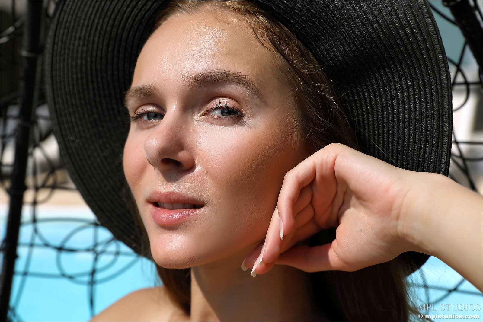 Prześliczna porno modelka prezentuje cudowne ciałko przy basenie pod gołym niebem. Zgrabna kusicielka ma wytatuowaną stópkę i zniewalające spojrzenie. Kusząca laseczka preferuje delikatny seks. Ciasna cipka i sterczące sutki z podniecenia.