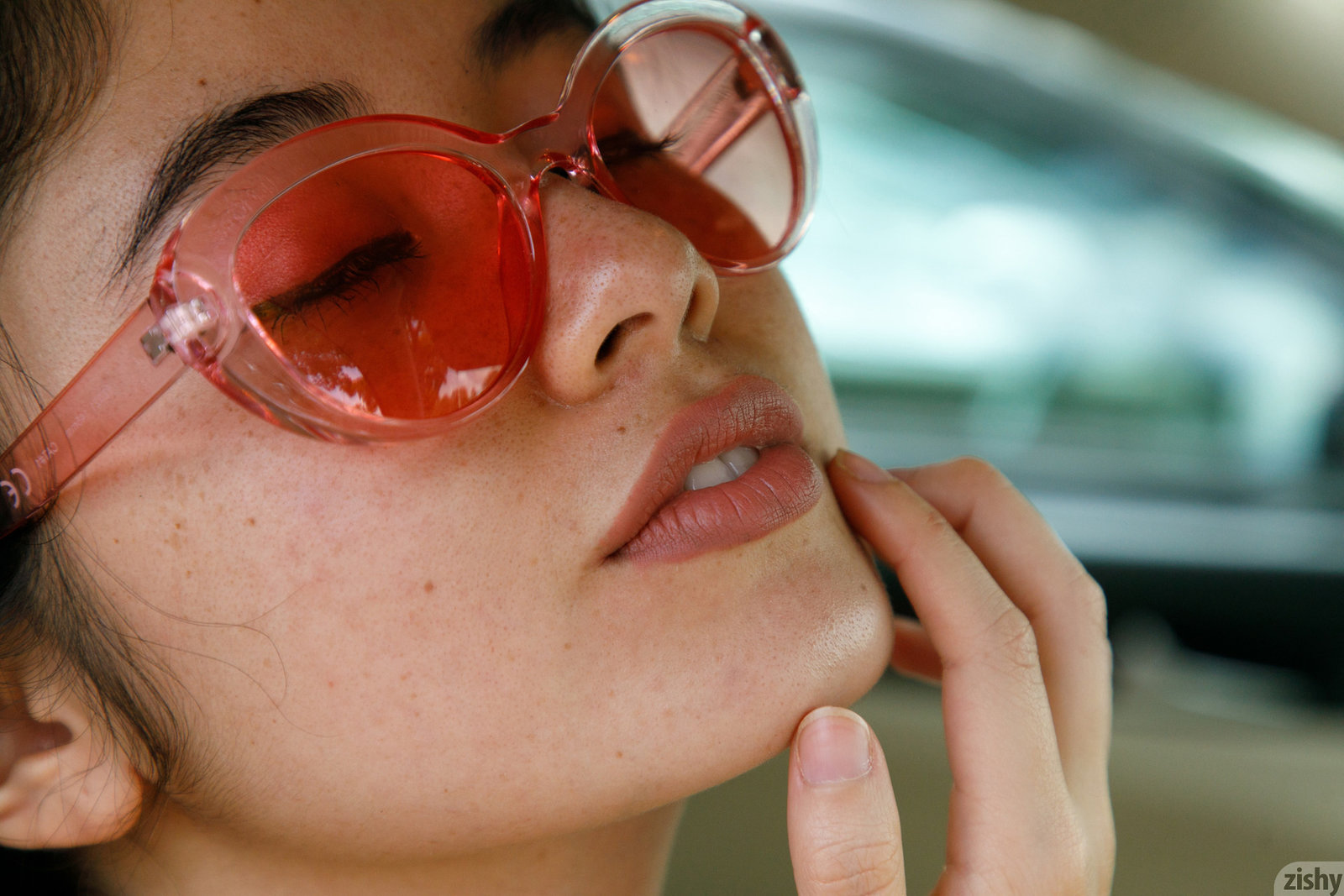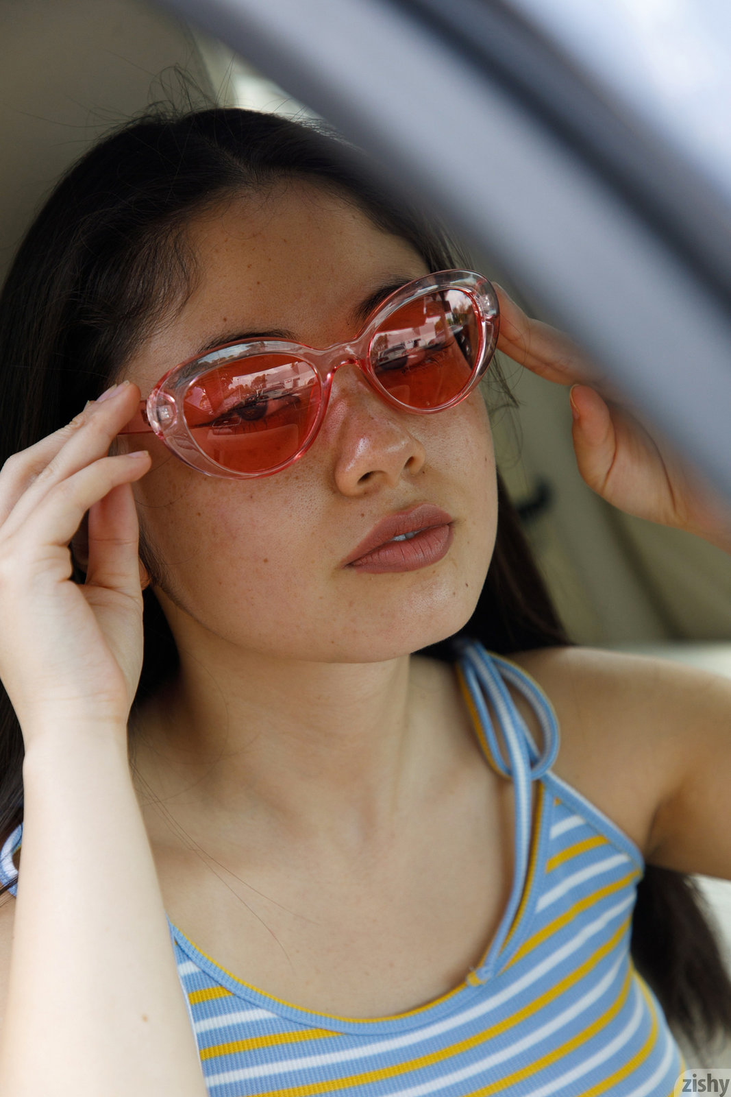 Orientalna brunetka ma prześliczne oczka i fajne cycuszki. Śliczna porno Azjatka wyskakuje z ciuszków i delikatnie się masturbuje w aucie. Czarnowłosa bogini seksu lubi ujeżdżać długiego kutasa. Piękna panienka lubi ostry seks w trójkącie.