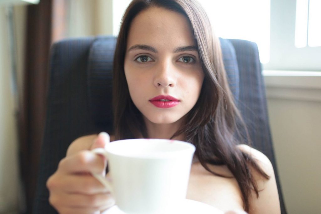 Szczupła brunetka pije kawę o poranku na fotelu tatusia. Całkowicie naga laseczka lubi gdy rodziców nie ma w domu i może się wtedy poczuć jak królowa. Napalona suczka ma wygoloną i ciasną pipkę i niewielkie piersi. Zgrabna nastolatka ma czerwone usta.