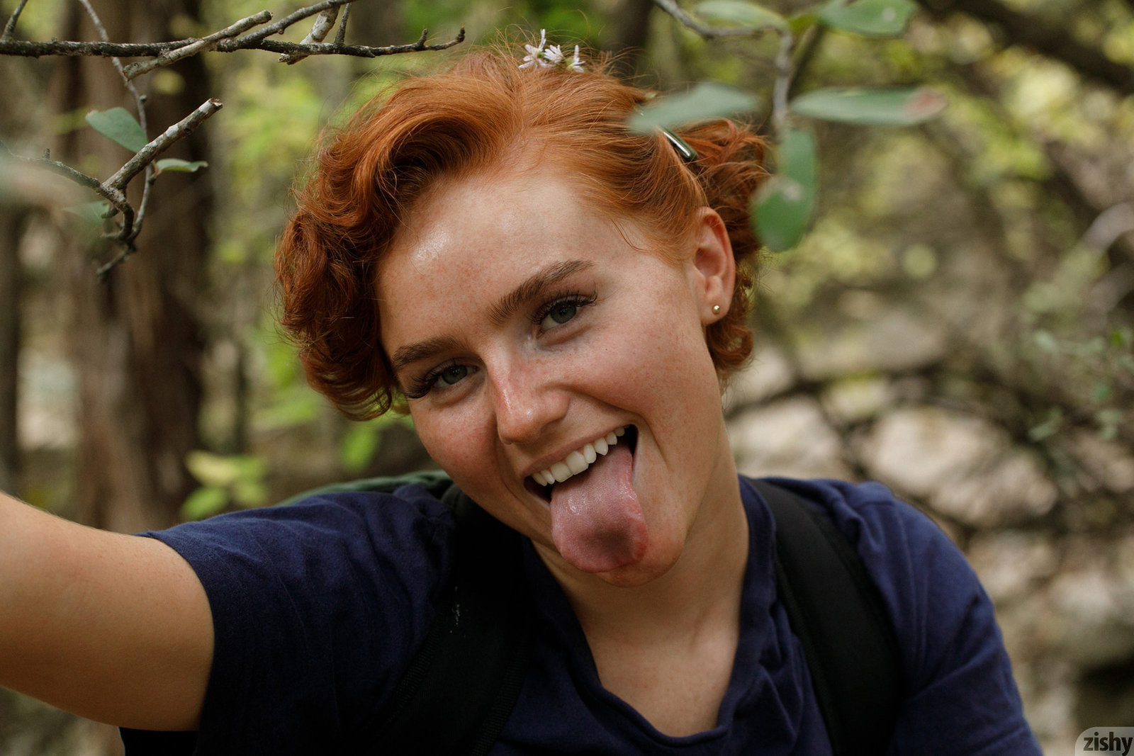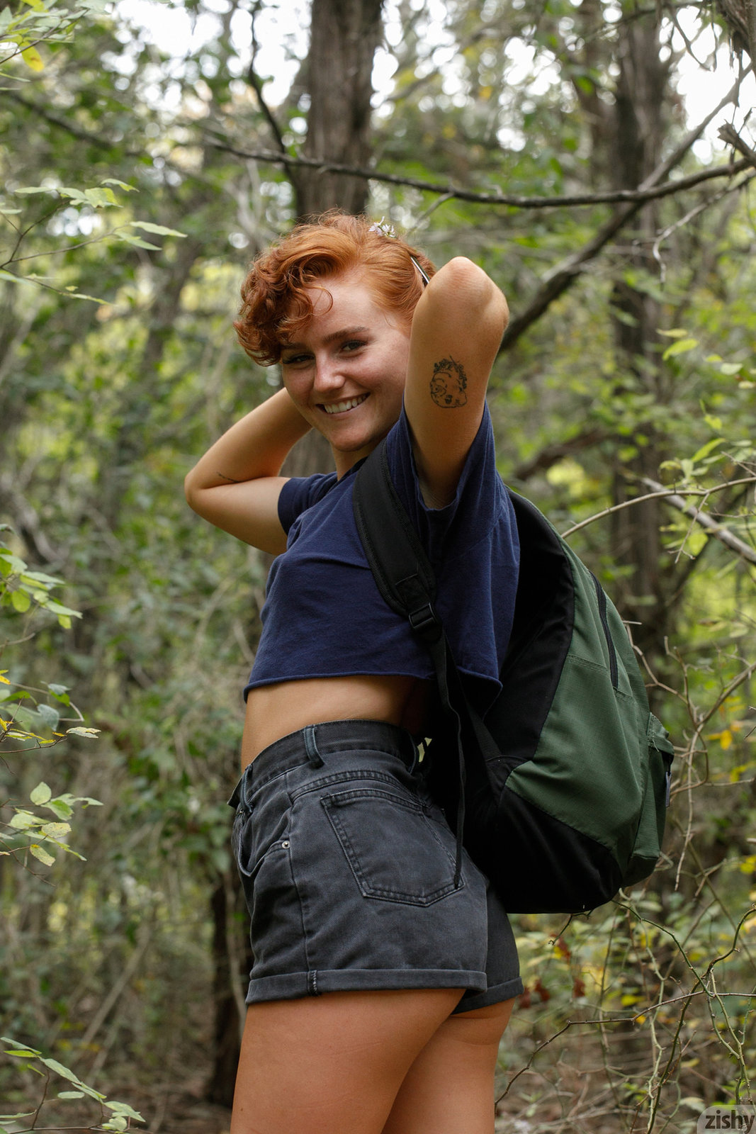 Ruda seks amatorka zdejmuje krótkie spodenki w środku lasu. Wesoła dziewczyna jest fanką ostrego seksu w publicznych miejscach. Fajna dziewczyna z kolczykiem w pępku ma niewielki biuścik i zgrabną dupeczkę. Każdy facet chciałby ją zaliczyć.