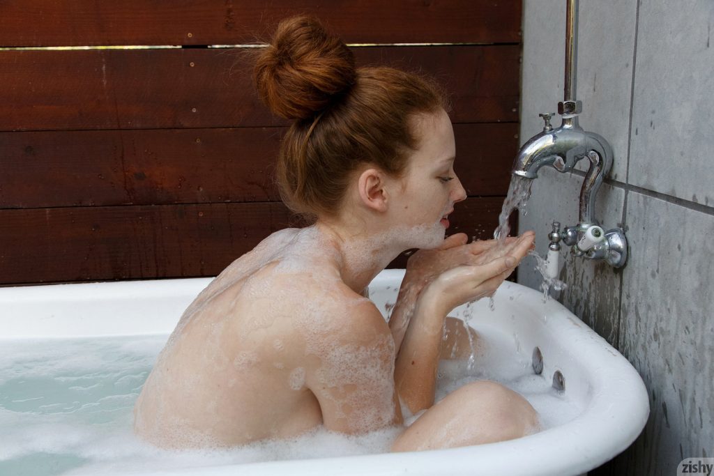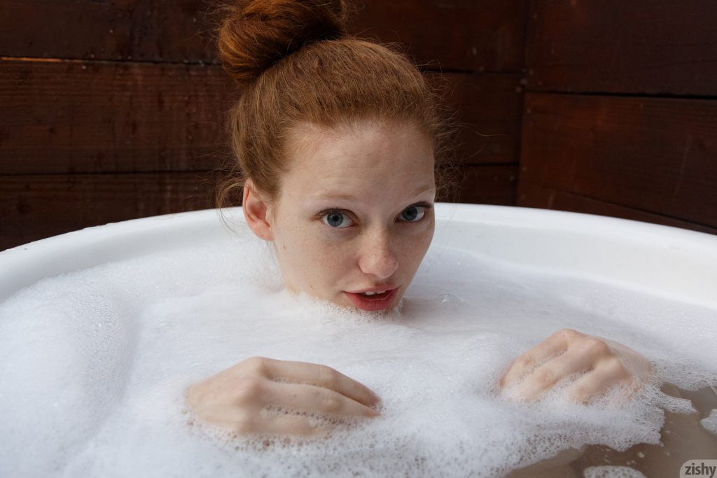 Ruda okularnica rozbiera się do naga i bierze gorącą kąpiel. Boska lisica ma wielkie piersi i duże oczka. Niesamowita studentka po kąpieli kładzie się na łóżku w sypialni i robi sobie dobrze ulubioną zabaweczką. Naturalna laseczka ma słodki uśmiech.