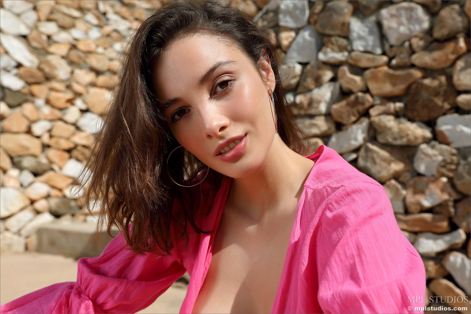 Śliczna pani siada na kocyku pod gołym niebem, rozkłada nóżki i prezentuje wnętrze wilgotnej szparki. Erotyczna lalunia ma ochotę na ostry seksÃ? na wakacjach. Dziewczyna poluje na przystojnych Włochów,Ã? którym mogłaby dać dupy.