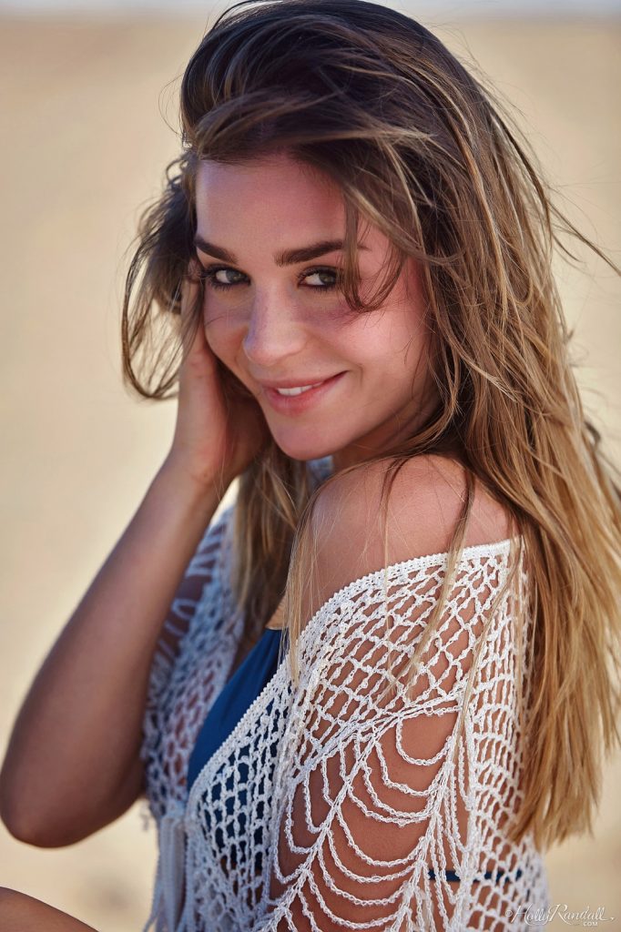 Mega ślicznotka wygląda bardzo seksownie w niebieskim bikini. Samotna dziewczyna relaksuje się na plaży. Zgrabna modelka lubi gdy promnienie słołca rozgrzewają jej nienaganne ciałko. Niunia zdejmuje górną część bikini nad oceanem.