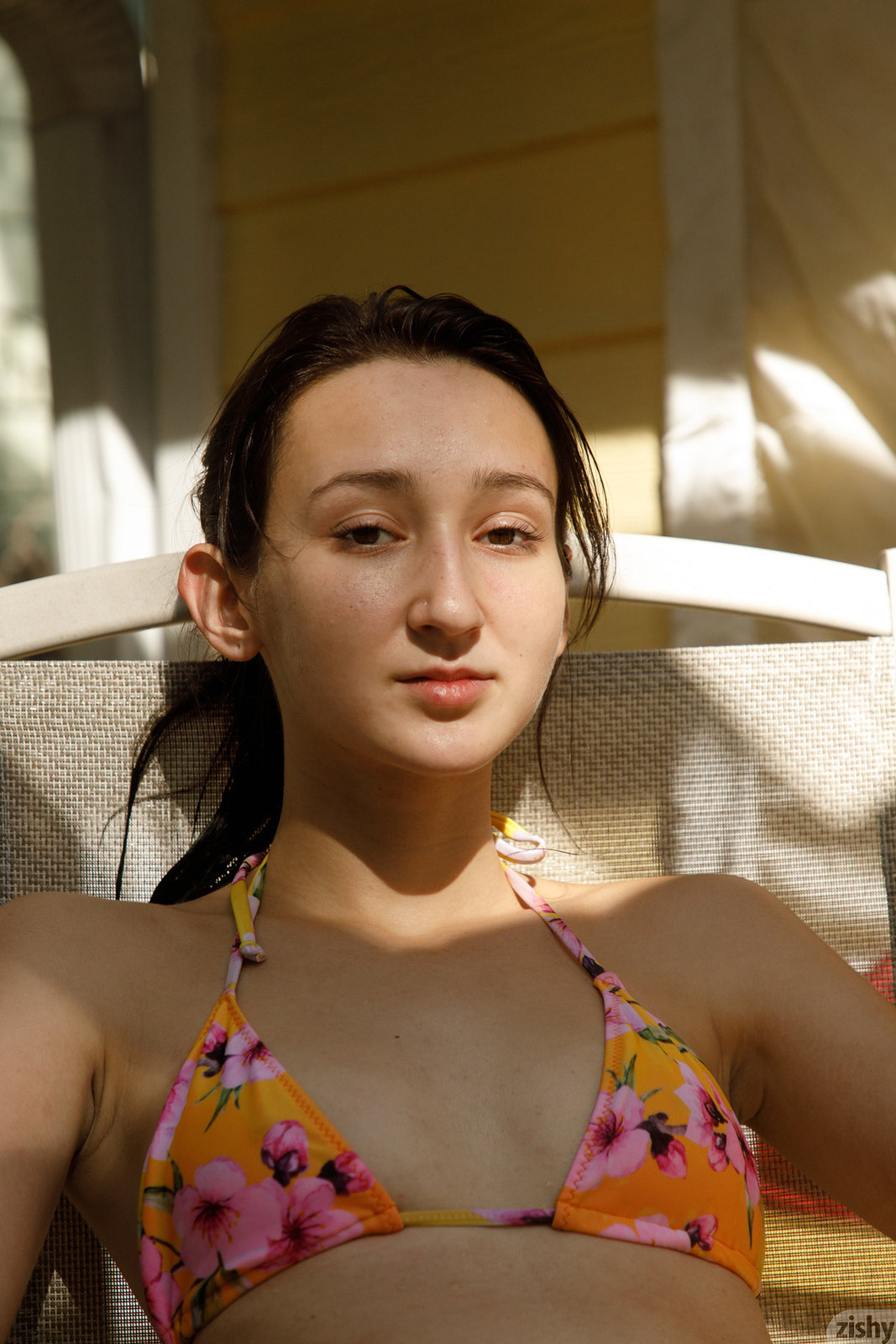 Młoda suczka w bikini wychodzi z basenu i delikatnie się pieści po mokrym ciałku. Kusząca porno modelka ma sterczące sutki i pięknie przystrzyżoną szparkę. Fajna panienka bierze prysznic i daje sobie z palca. Młoda niunia lubi być klepana pod dupeczce.