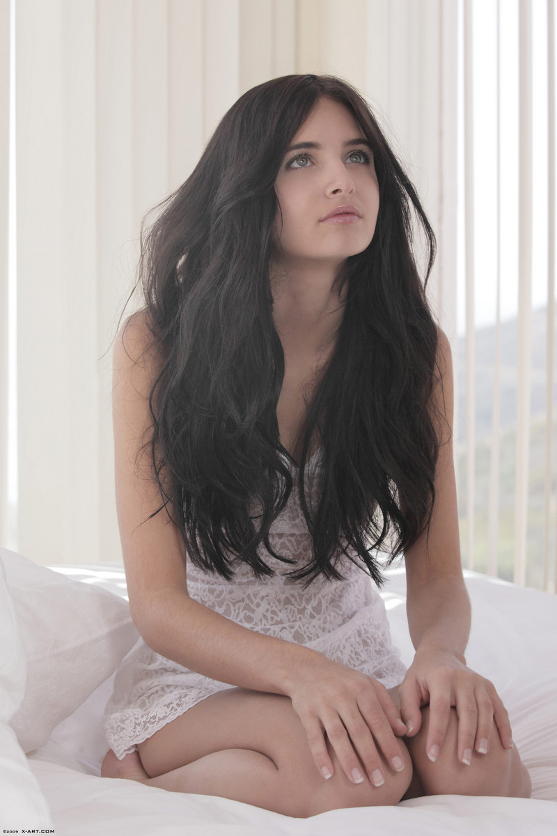 Szarooka pani zdejmuje białą koszulę nocną o poranku w sypialni i robi sobie dobrze. Delikatna porno brunetka ma niewielkie piersi i zmysłowe spojrzenie. Urocza kusicielka zaprasza wszystkich chętnych na szybki numerek. Kto ma ochotę zaliczyć brunetkę?