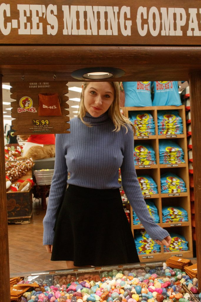 Porno amatorka w okularach ma duże piersi i sztywne sutki, które prześwitują przez sweterek. Seksowna blondyneczka nie ma na sobie staniczka. Lalunia wchodzi na drabinę i wypina na niej dupsko w krótkiej spódniczce. Jędrne pośladki i ciasna pipka.