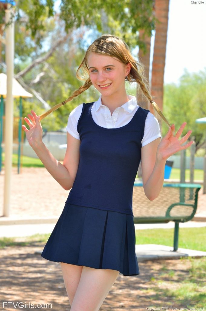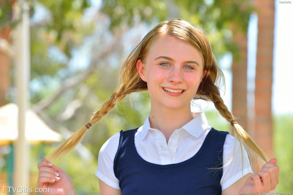 Seksowna porno nastolatka w warkoczach skacze w krótkiej spódniczce na boisku w parku. Uśmiechnięta osiemnastolatka ma jędrną dupeczkę i niewielkie piersi. Delikatna blondyneczka ma zgrabne nóżki i idealnie wydepilowaną szparkę.
